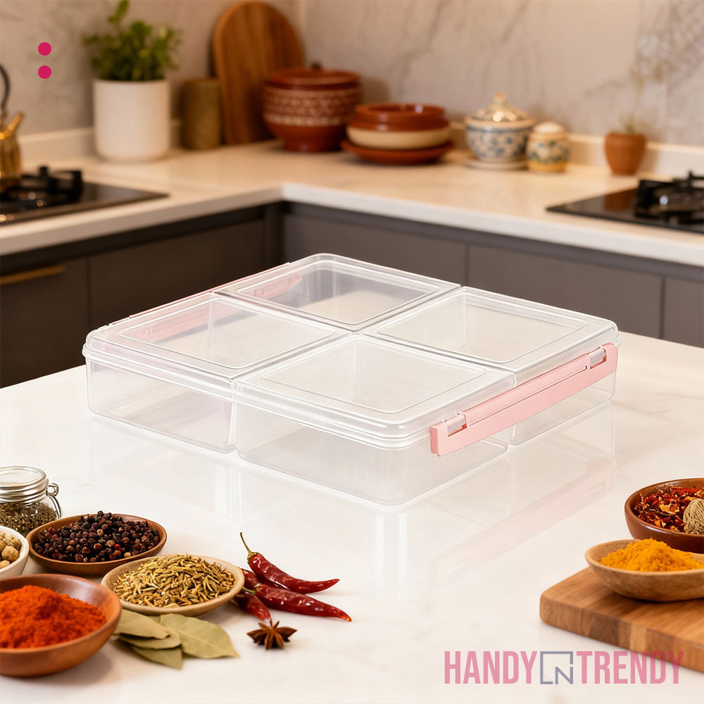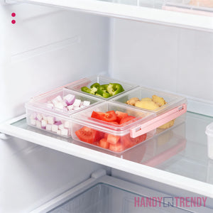 The 4-compartment food container is your ultimate kitchen companion for organized cooking. With airtight seals and a secure pink latch, it keeps chopped veggies, cheese, and ingredients fresh and ready to use. Whether you're prepping for the week or setting up a DIY salad bar, this container saves time, reduces mess, and brings clarity to your fridge.