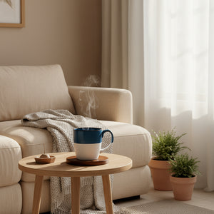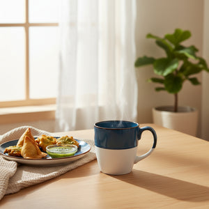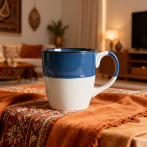 The Eclipse Mug blends bold design with everyday comfort. Featuring a glossy deep blue upper half and a matte white base, this 330ml ceramic cup offers a striking visual balance that complements modern kitchens and workspaces. Its smooth curves and ergonomic handle make it perfect for coffee, tea, or cocoa—whether you're starting your day or winding down.