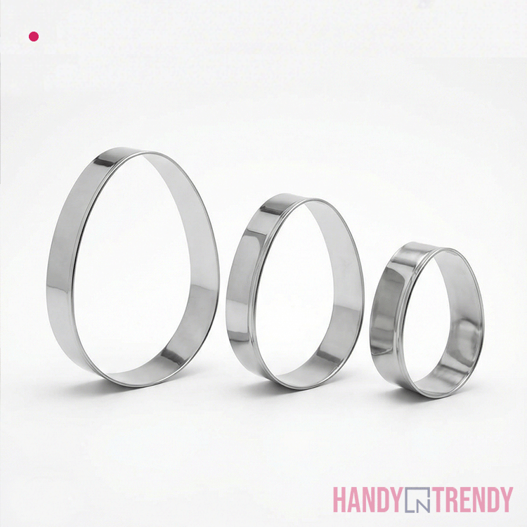 This 3pcs Egg Shaped Cookie Cutter Set gives you three graduated cutters to create perfectly shaped egg cookies, biscuits, fondant decorations, and sandwich cutouts. Made from food‑grade stainless steel, each cutter has smooth, rolled edges for safe handling and clean, crisp cuts. The nesting design saves space in your drawer and makes it easy to choose the right size for any recipe or occasion. Ideal for Easter baking, kids’ parties, and creative dessert plating.