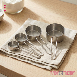 This 4-piece Stainless Steel Measuring Cups Set is designed for precision and durability in every recipe. Made from food-grade stainless steel, each cup offers accurate measurements and a sturdy grip for dry and liquid ingredients alike. The set includes ¼ cup, ⅓ cup, ½ cup, and 1 cup sizes, all connected by a metal ring for easy storage. Whether you’re baking cakes or prepping sauces, these cups deliver consistent results and long-lasting performance.
