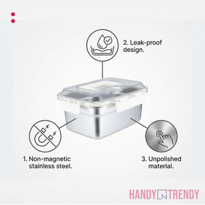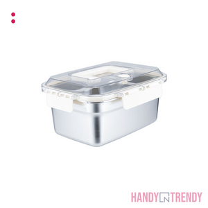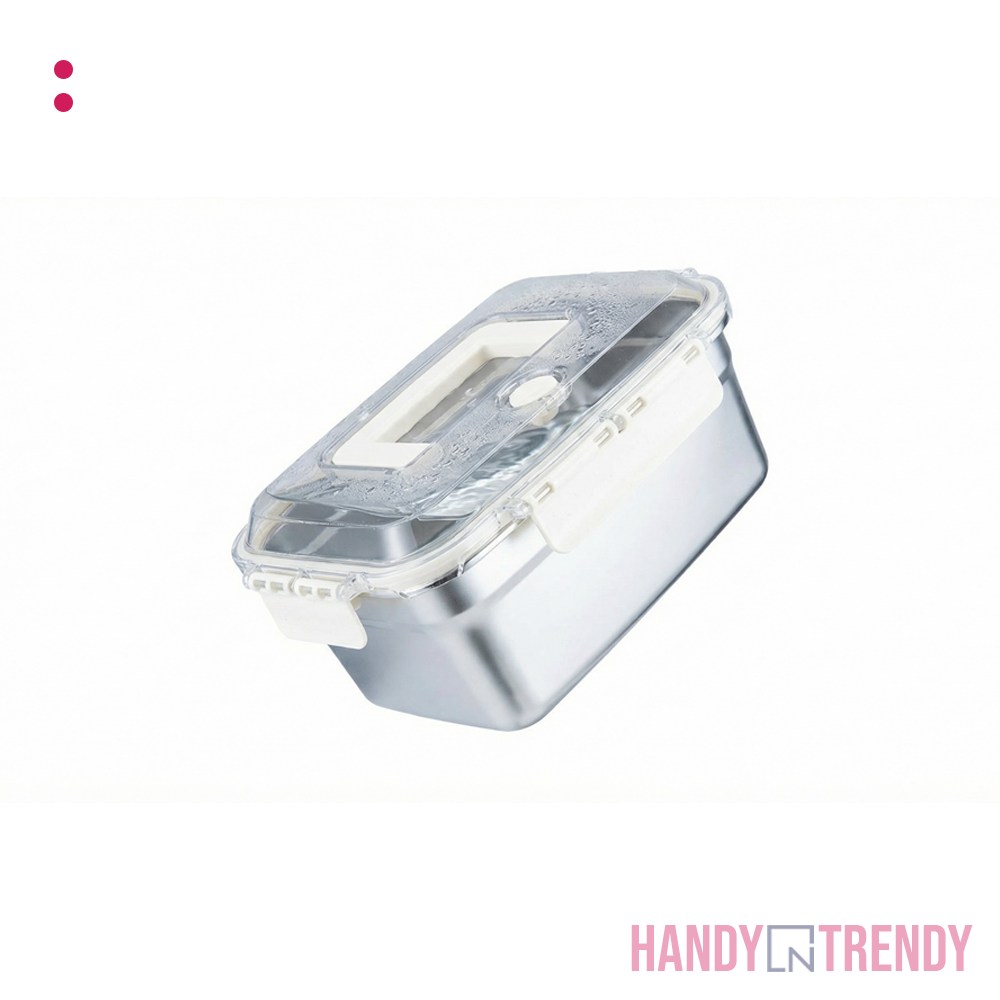This 2000ml Stainless Steel Food Storage Container is the perfect solution for keeping meals, snacks, and leftovers fresh. Crafted from food-grade stainless steel, it resists rust, odors, and stains while maintaining hygiene. The transparent lid lets you see contents at a glance, and the four locking clips with built-in handle ensure an airtight seal and spill-free transport. Ideal for portion control, lunch boxes, or fridge storage, this container combines durability with convenience.