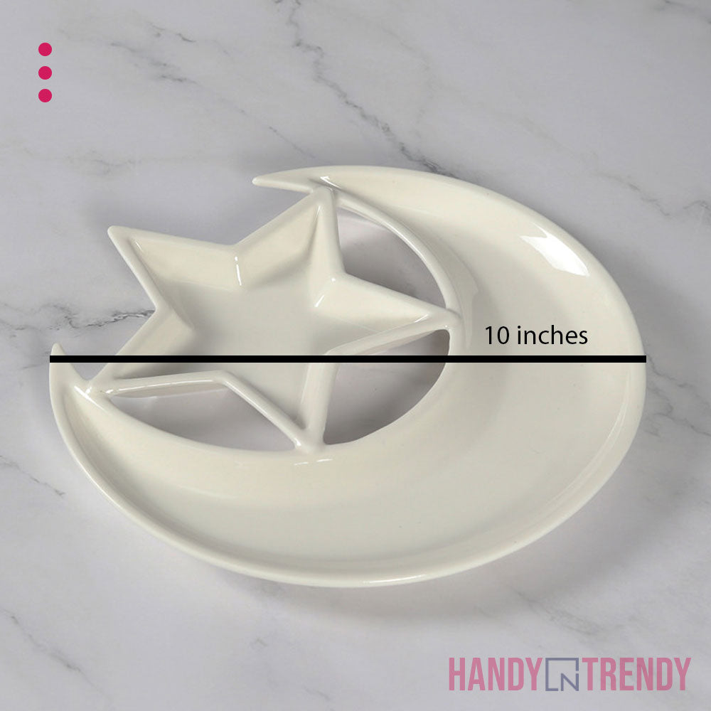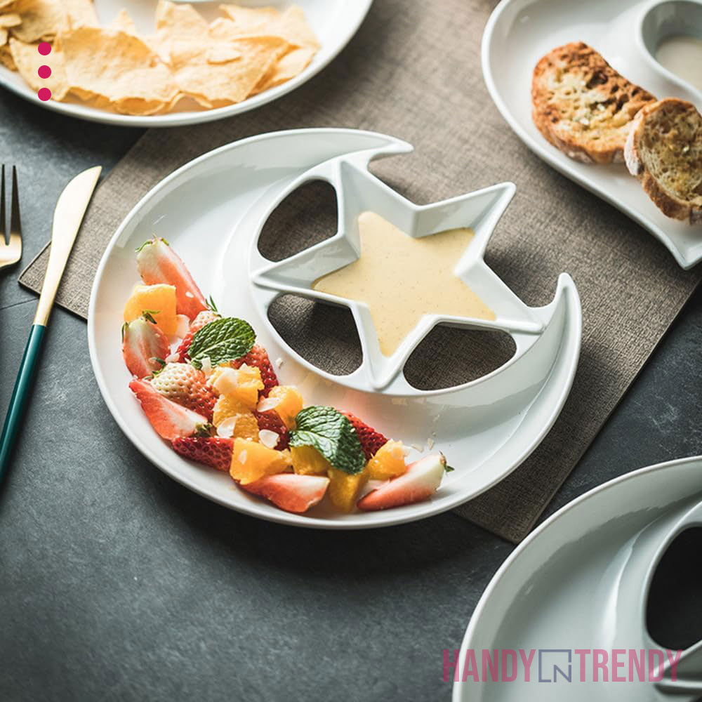 ✅ Dual Section Layout – Crescent for snacks, star for dips or sauces