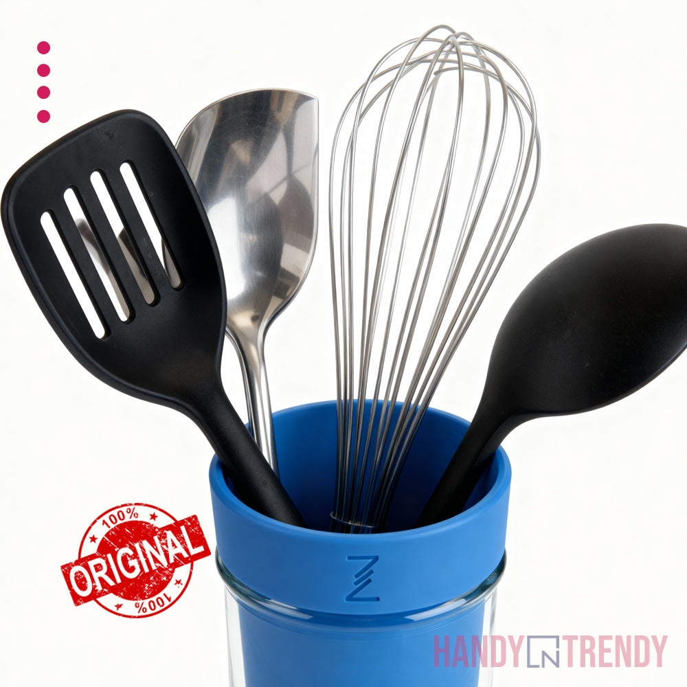 ✅ Bold Silicone Insert with Zest Branding – Holds utensils upright and adds a pop of color