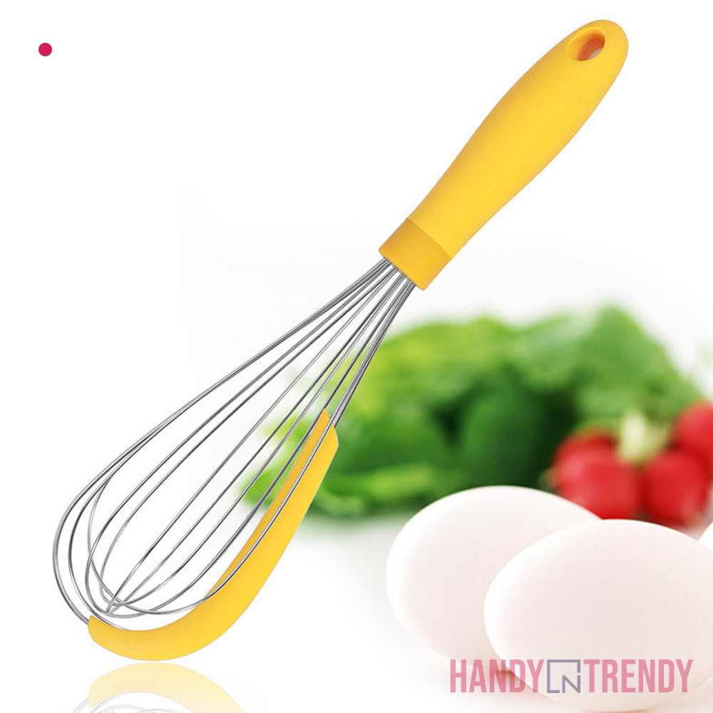 The Handy Egg Whisk with Scraper is a two-in-one kitchen essential designed for efficient mixing and mess-free prep. With a generous 12-inch length, it offers extended reach for deep bowls and wide pans. The stainless steel wires whip eggs and batters to perfection, while the flexible scraper edge cleans bowl sides as you mix—saving time and reducing waste. Whether you're baking, cooking, or prepping sauces, this whisk delivers comfort, control, and clean results.
