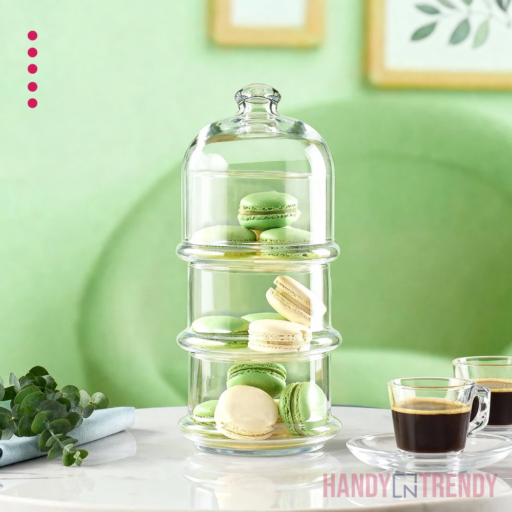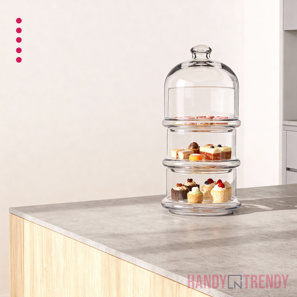 Serve sophistication in every layer. This Pasabahce 3-tier dessert stand is the ultimate centerpiece for high-tea gatherings, birthdays, and festive tables. With its crystal-clear glass tiers and protective dome, it turns your sweet creations into edible art.